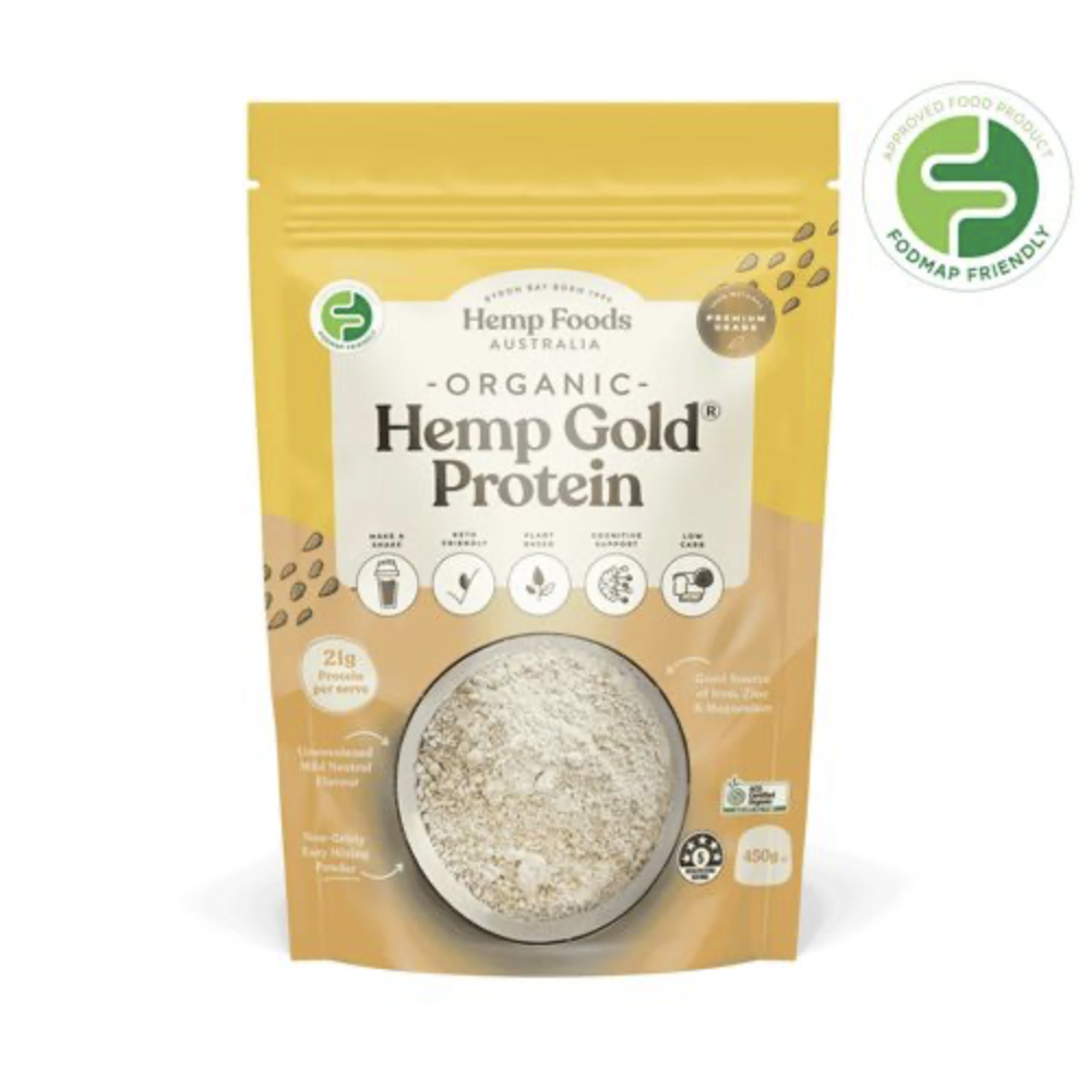 Hemp Foods Organic Hemp Gold Protein Powder 450g contains: GMO-free Certified Organic Hemp Gold Protein Powder (100%)